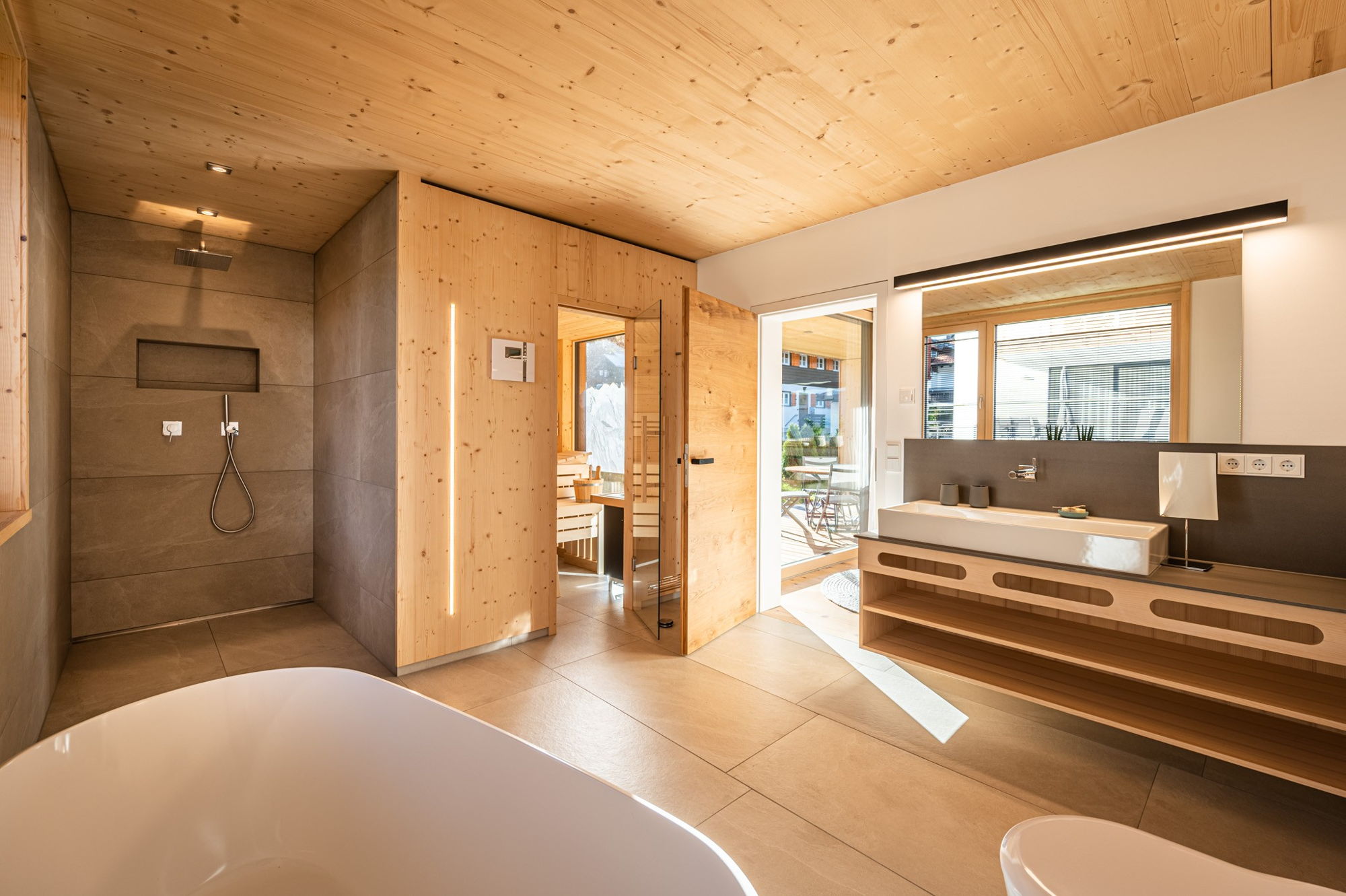 Wir bauen in unserer Werkstatt Ihre Außensauna, Innensauna, Dampfdusche, Infrarotkabine und die dazu passenden Möbel und Inneneinrichtungen.