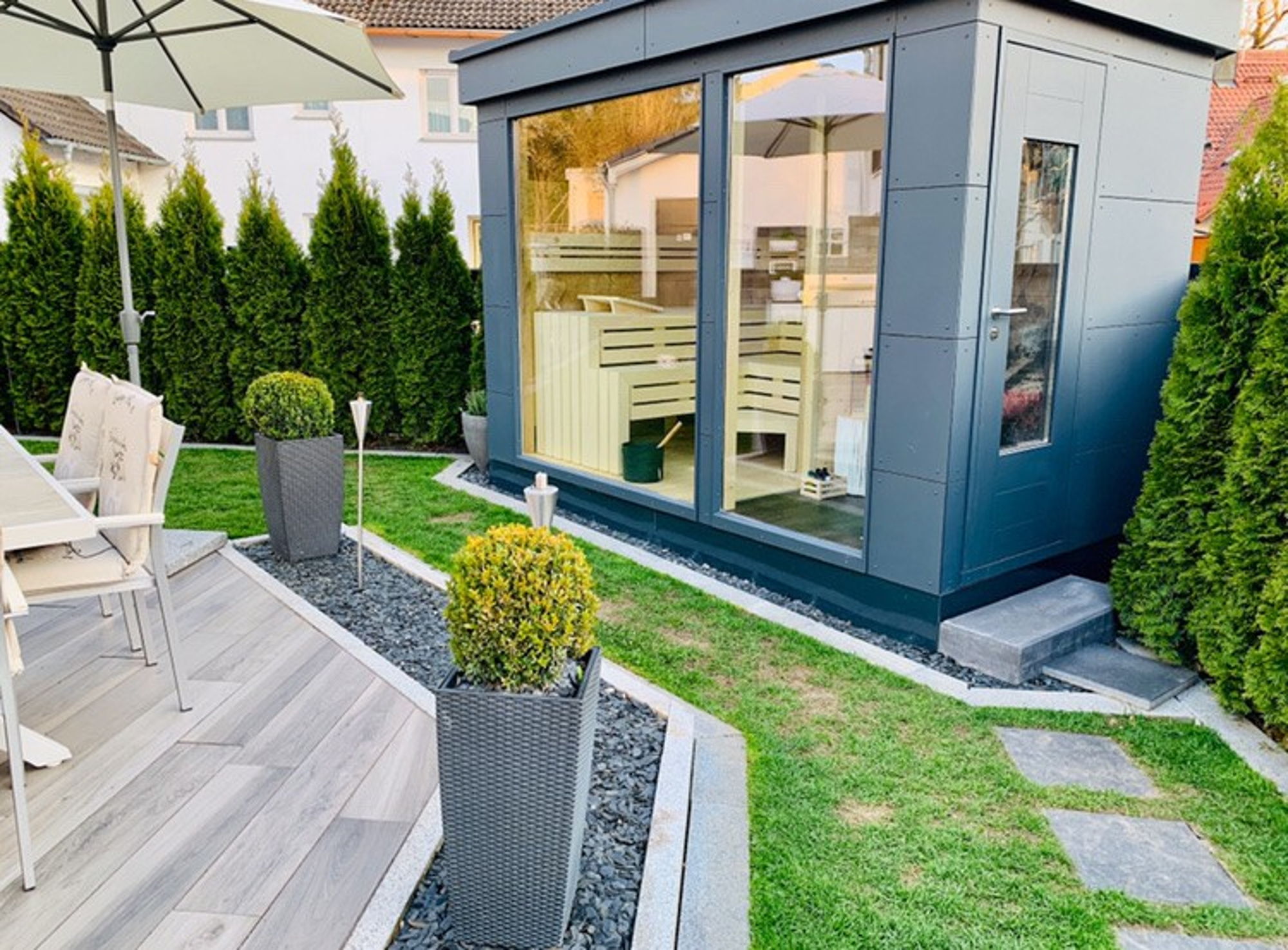 Egal, ob für den Garten, auf der Terasse oder doch im Badezimmer. Bei uns gibt es keinen Typ A oder B. Unser Standard ist die Individualität. Jede Sauna ist den Gegebenheiten vor Ort und auf Ihre Wünsche angepasst und so ein für Sie gefertigtes Unikat.